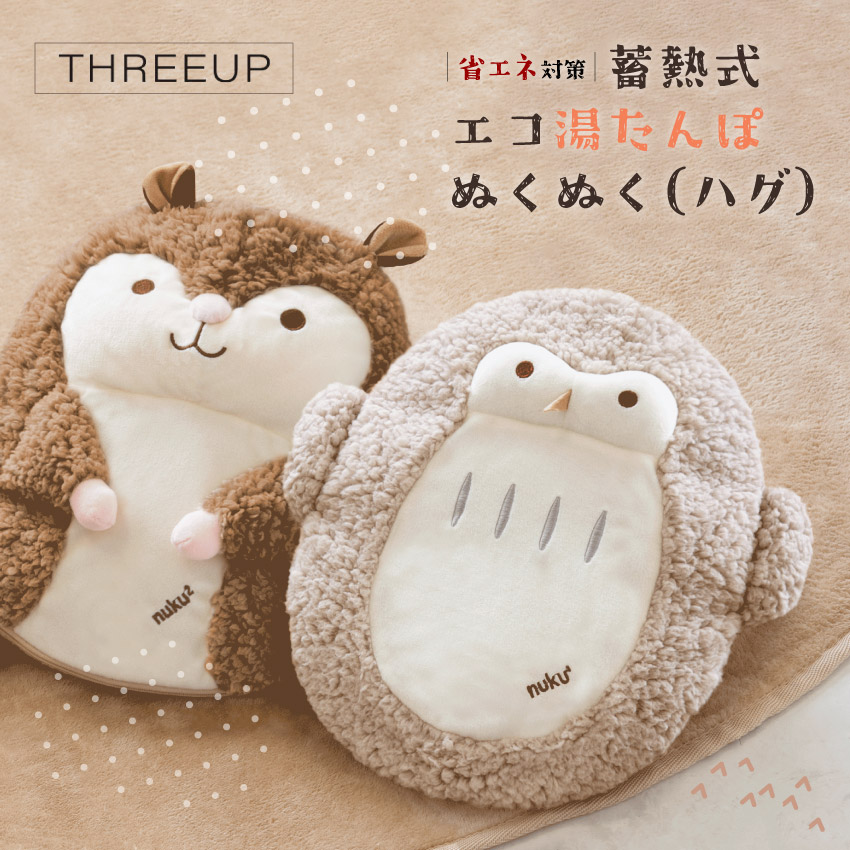 商品仕様 品名 THREEUP EWT-2145 蓄熱式 エコ湯たんぽ ぬくぬく(ハグ) サイズ (本体)W23×D28×H5cm、(保温カバー)H30.5×W32.5cm 材質 (本体)ナイロン、PVC/3層構造、(保温カバー)ポリエステル100% 重量 約1.7kg 消費電力 360W 連続使用時間 アンカ目的の場合:約8時間(布団内で使用)