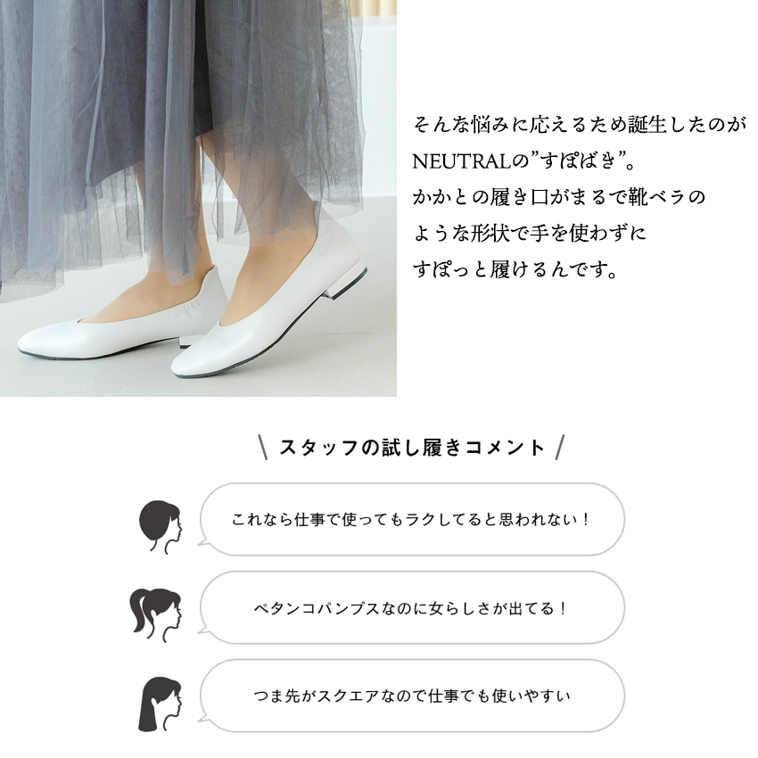 商品名 NEUTRAL ニュートラル すぽばき 好印象 フラットパンプス