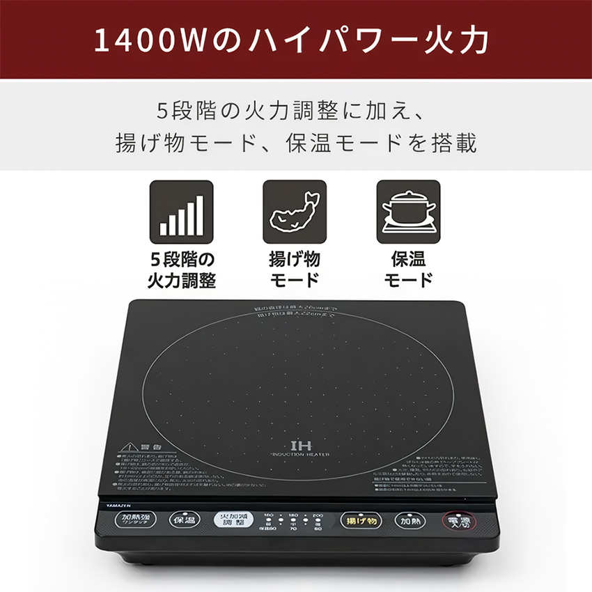 IHクッキングヒーター YEP-CS140本体にコードが収納できる高火力1400Wの卓上IHコンロ